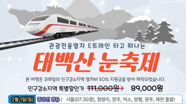 2026년 동해 일출 해돋이 '팔도장터 관광열차' 무박2일 진행 동해시 관광지(망상해변~무릉계곡~추암해변) 일정 망상해변 오전 7시 38분 일출 시작
