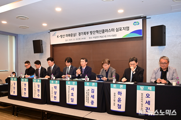 경기도는 20일 의정부 아일랜드 캐슬에서 ‘K-방산 미래중심! 경기북부 방산혁신 클러스터 심포지엄’을 열고, 경기북부를 첨단 방위산업 중심지로 육성하는 방안을 주제로 논의를 진행했다.