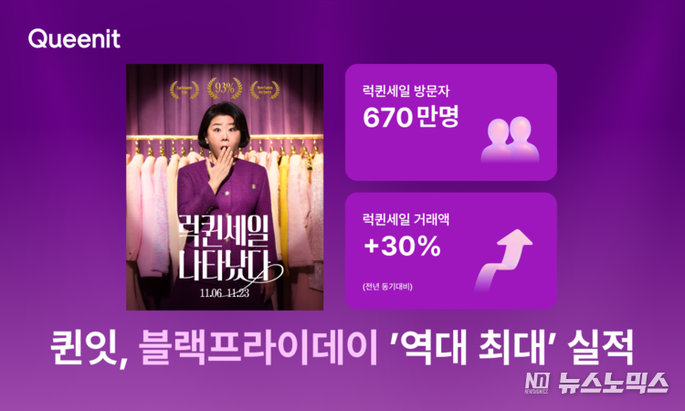 라포랩스(대표 최희민·홍주영)가 운영하는 4050 라이프스타일 플랫폼 ‘퀸잇’은 블랙프라이데이 시즌을 맞아 진행한 ‘2025 럭퀸세일’이 역대 최고 거래액을 기록했다고 26일 밝혔다.