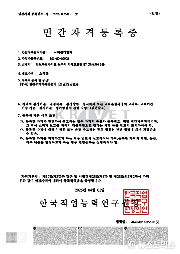 강원특별자치도 원주시에 있는 '국제걷기협회'(회장·오석환)은 최근 ’한국 직업능력연구원’에 ‘깔창 수제 제작 전문가(Insole handmade making specialist)’ 민간 자격증을 등록했다고 4일 밝혔다.