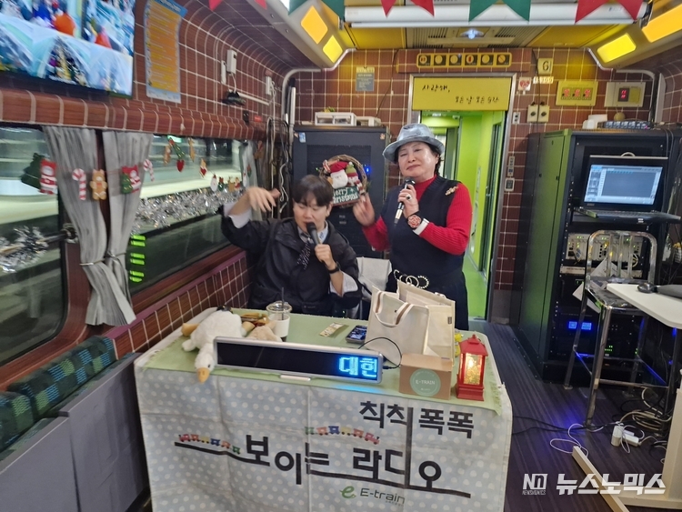 돌아오는 관광열차 내에서는 '보이는 라디오'를 진행 하면서 사연과 노래를 신청한 분들에게는 다양한 상품들을 나눠 주었으며, 트로트 가수 서연씨도 깜짝 출연 하였다.