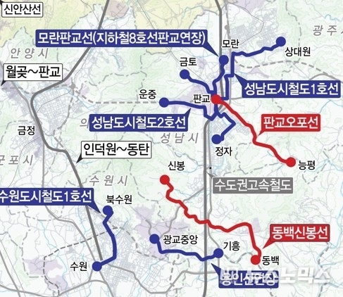 또, 판교오포선은 신분당선과 경강선이 만나는 판교역에서 광주 오포를 연결하는 총 연장 9.50km, 총 사업비 9,451억 원이 투입된다.
