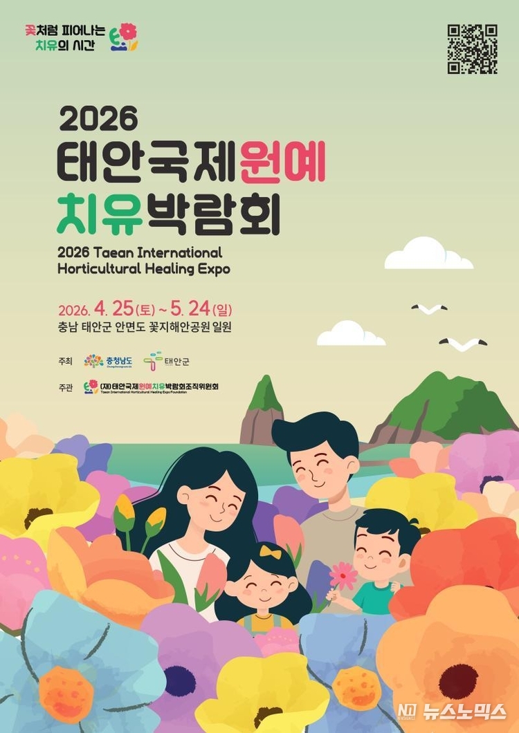 충청남도 태안군 (재)태안국제원예치유박람회 조직위원회는 오는 4월 25일부터 5월 24일까지 총30일간 안면도 '꽃지해안공원' 일대에서 '자연에서 찾는 건강한 미래, 원예·치유' 주제와 '꽃처럼 피어나는 치유의 시간' 슬로건으로 '2026 태안국제원예치유박람회((2026 Taean International Horticultural & Healing Expo)'를 개최한다.