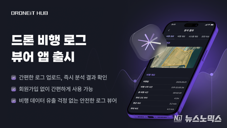 드로닛 허브는 드론 비행 후 생성되는 로그 데이터를 PC가 아닌 모바일 환경에서 즉시 분석할 수 있도록 개발된 앱으로, 현장 중심의 신속한 판단과 드론 운용 효율 향상에 기여한다.