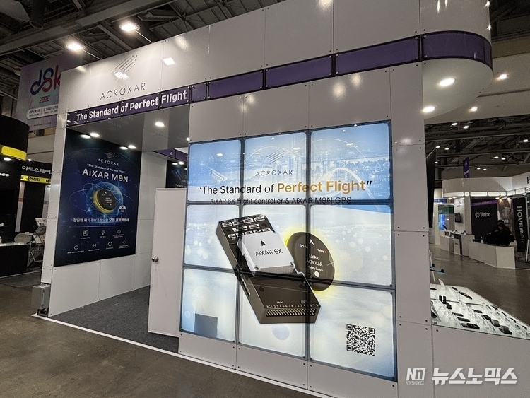 아크로사는 이번 전시회에서 차세대 비행제어기(Flight Controller)인 ‘AiXAR V6X’와 고정밀 다중 대역 위치 측정 시스템인 ‘AiXAR M9N’ GNSS 모듈을 주력으로 선보였다.