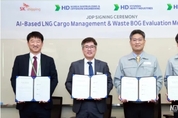 뉴스노믹스 전상천 기자 | HD현대가 SK해운과 함께 LNG 운반선용 ‘AI 기반 선박 화물 운영 솔루션’ 실증에 나선다. HD현대의 조선 부문 계열사인 HD한국조선해양, HD현대중공업, HD현대마린솔루션은 최근 HD현대중공업 울산 조선소에서 SK해운과 차세대 ‘AI 화물 운영 솔루션’(이하 AI-CHS) 공동 개발에 관한 서명식을 진행했다고 1일 밝혔다. AI-CHS는 HD한국조선해양이 자체 개발한 AI 기반의 화물 운영 솔루션으로, LNG운반선의 운항 및 정박 과정에서 자연 발생하는 증발 가스(BOG : Boil-off Gas)의 양을 예측한다. 또한, 이를 재액화 설비, 발전기, 메인 엔진 등 주요 설비에 적절히 분배하기 위한 의사결정을 돕는다. LNG운반선 화물창 내 액화천연가스는 극저온 상태로 운송되는데, 운송 중 외부 충격(슬로싱[1]) 및 열 유입으로 매일 약 0.1%의 증발 가스가 발생하게 된다. 화물창 내 적정 압력을 유지하기 위해 증발 가스는 메인 엔진의 추진 연료로 소비되거나 부속 설비의 연료로 활용된다. 기존에는 이러한 일련의 의사결정 과정들이 숙련 선원들의 경험을 토대로 이뤄졌다. 그러나, AI-CHS는 운항 조건 및 화물 운영 상황을