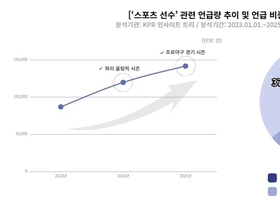 뉴스노믹스 전상천 기자 | 스포츠 선수에 대한 대중의 관심이 경기 결과 중심에서 선수 개인 콘텐츠로 이동하며, 선수의 영향력이 ‘개인 IP’로 확장되고 있다는 빅데이터 분석 결과가 나왔다. 종합커뮤니케이션그룹 KPR(사장 김강진) 부설 KPR 인사이트연구소는 온라인상 35만 건의 빅데이터를 분석한 결과, 스포츠 선수에 대한 언급량이 2025년에 14만7000건으로 최근 3년 사이 63% 이상 증가했다고 밝혔다. 최근 방영된 예능 프로그램 ‘신인감독 김연경’은 김연경 선수가 코트 위 선수 역할을 넘어 신인 감독으로 데뷔해 팀을 이끄는 과정을 역동적으로 그려내 세간의 주목을 받았다. 김연아 선수 역시 유튜브 채널과 토크 프로그램을 통해 은퇴 이후의 일상을 솔직하게 전하며 대중의 관심을 모으고 있다. 이러한 흐름은 스포츠 선수를 더 이상 승패나 기록으로 기억하는 것이 아니라, 훈련 과정과 삶의 태도 등 일상적인 서사까지 함께 소비하는 방향으로 관심이 확장되고 있음을 시사한다. 이번 빅데이터 분석에서 스포츠 선수 관련 언급량은 국제 대회 및 경기 시즌과 맞물려 증가하는 양상을 보이는 동시에 2023년 이후 전체 규모가 꾸준히 우상향하는 흐름이 확인됐다. 지난 202