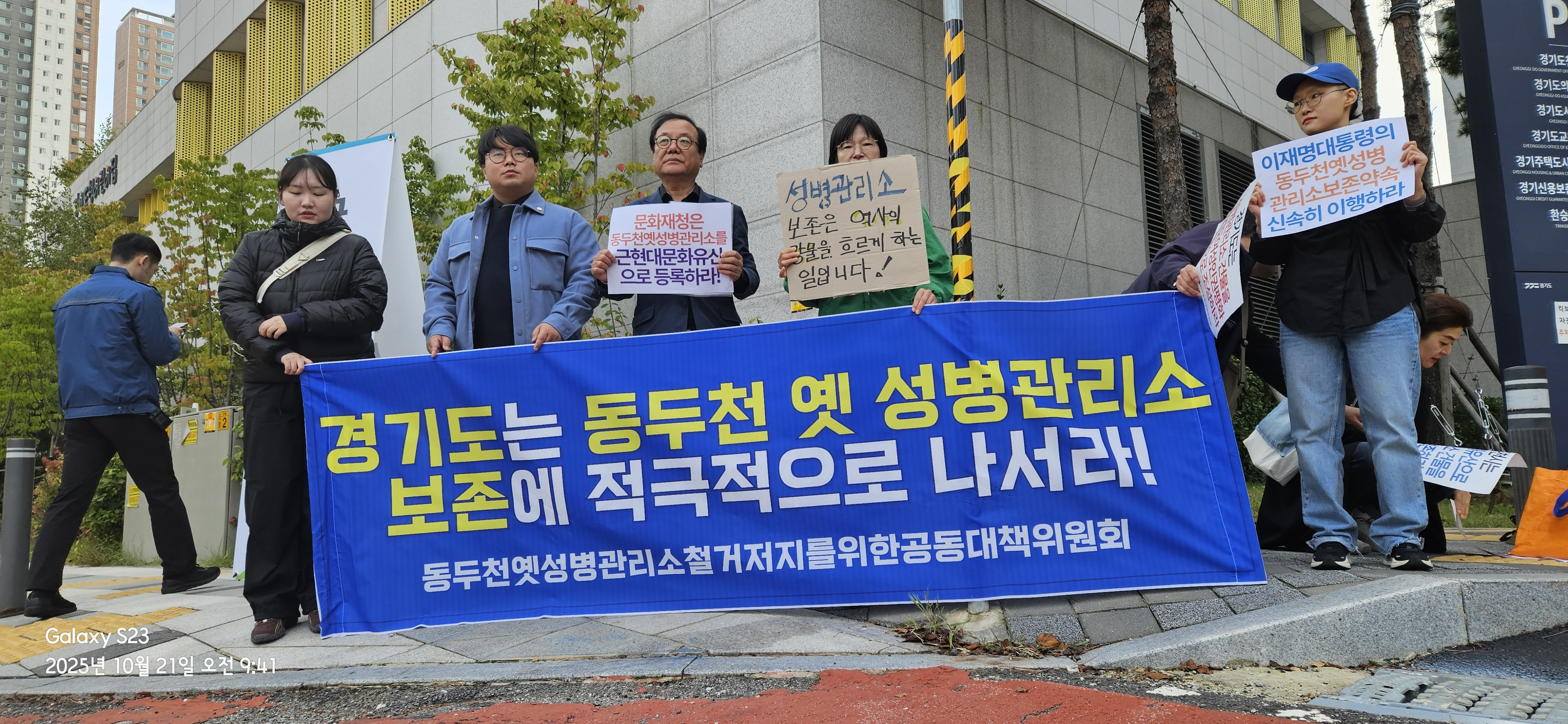 동두천 옛 성병관리소 철거저지를 위한 공동대책위원회(공동대표·김대용)는 지난 21일 오전 9시 30분 수원 광교 경기도청 앞에서 '경기도는 동두천 옛 성병관리소 보존에 적극 나서라'고 촉구했다.