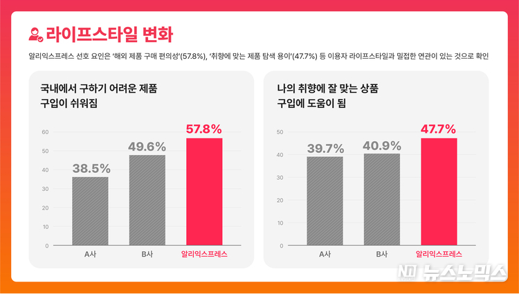 아울러 소비자들은 알리익스프레스를 통해 라이프스타일 전반에서도 긍정적인 변화를 체감한 것으로 나타났다. “새로운 상품을 더 자주 접하게 됐다”, “내 취향에 맞는 제품을 쉽게 찾을 수 있다”, “다양한 조리도구를 구매해 요리가 즐거워졌다”, “국내에서 구하기 어려운 제품을 쉽게 구입할 수 있다” 등 생활 전반의 질적 개선을 경험했다고 응답했다.