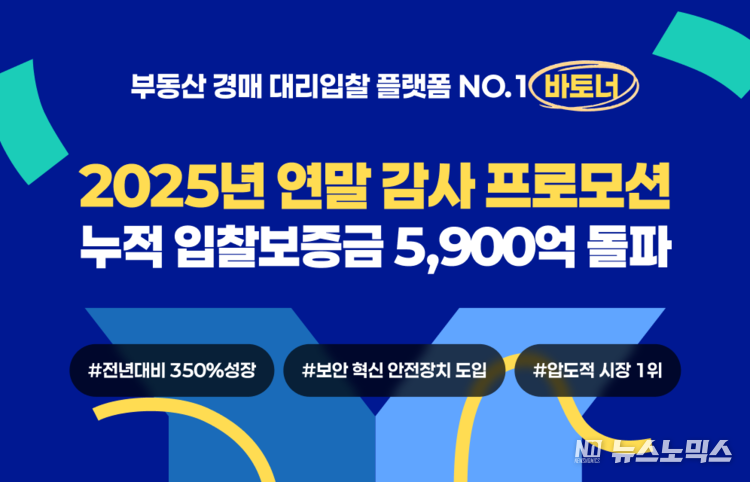 누적 입찰보증금 5900억원을 돌파하며 국내 대리입찰 시장 1위로 자리매김한 바토너가 2025년 연말 특별 감사 이벤트를 개최한다고 17일 밝혔다.