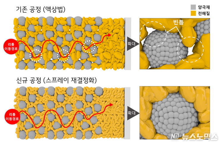 LG화학과 한양대 연구팀은 이러한 문제를 해결하기 위해 전해질 입자의 생산공정에 스프레이 재결정화(Spray-Recrystallization)기술을 적용했다.