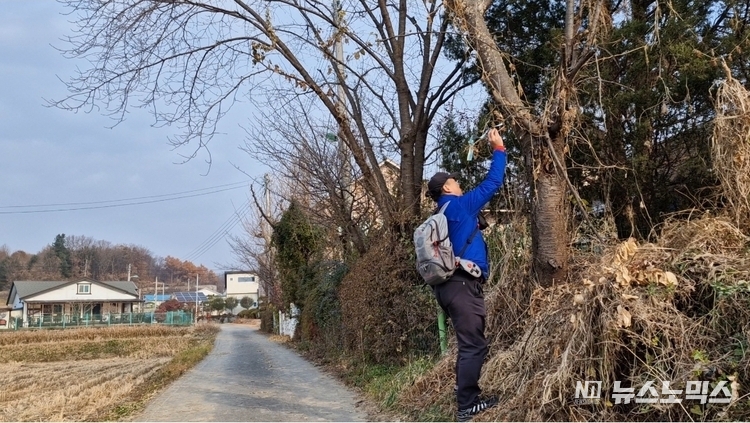 원덕역에서 걷기를 출발하여 원덕초등학교 뒤를 지나 전원주택 단지 마을을 오르고, 도곡3리 마을을 걷다가 물소리길 안내 띠가 떨어져 있는것을 발견하고 다시 높이 올려 두기도 했다.