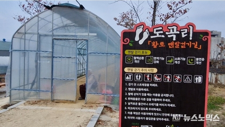 어느덧 걷다보니 도곡1리 맨발걷기 세족장 앞에 도착을 했고, 맨발걷기 실내 하우스를 구경도 해 보았다.