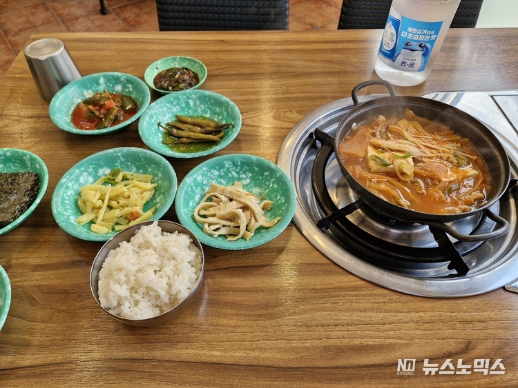 여러 상가를 지나던 중 '미정이 손맛 김치찌개' 식당 앞에서 '옛날 김치찌개'라는 문구를 보고 들어갔다.