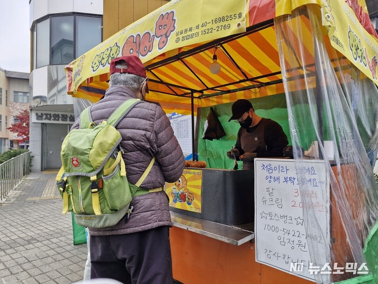 다양한 시장 물건들을 구경도 하면서 여기저기 둘러보며 시간을 보는 가운데, 양평5일장 중앙 무대 부근에서 젊은 부부가 하는 잉어빵 포차를 보았다.