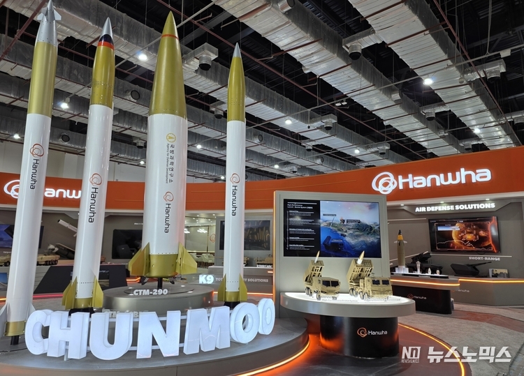한화에어로스페이스는 이번 전시회에서 대공 방어 통합 솔루션도 제안한다. L-SAM을 비롯해 40㎜ 무인 방공 시스템과 단거리 드론 발사대 등이 전시됐다. 지대지 유도무기로 개량한 천검도 소개한다.