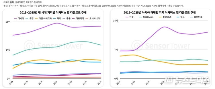 한국 시장에서는 2025년 출시된 네이버플러스 스토어가 두드러진 성과를 보였다. 다운로드와 다운로드 성장 순위 모두에서 1위를 차지하며 올해 가장 빠르게 성장한 이커머스 플랫폼으로 부상했다.
