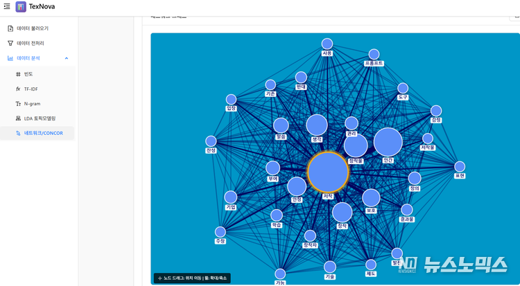 텍스노바는 텍스트 데이터를 분석한 결과를 제시하는 데 그치지 않고, 최신 대규모 언어 모델(LLM)을 활용해 분석 결과의 맥락과 의미를 종합적으로 파악하고 해석을 제공하는 구조로 설계됐다.