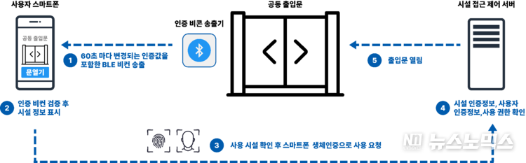 게다가, 자신의 스마트폰에서 사용하려는 공동시설을 검증한 후 스마트폰 생체인증으로 사용을 요청하면 해당 시설의 서버에서 사용자와 권한을 확인한 뒤 공동시설의 사용을 허락하는 구조다.