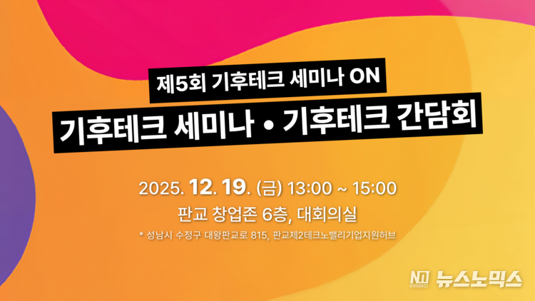 ‘2025 경기도 기후테크 스타트업 육성사업’의 핵심 프로그램인 ‘제5회 기후테크 세미나 ON’이 오는 19일 오후 1시 판교 창업존 6층 대회의실에서 개최된다.