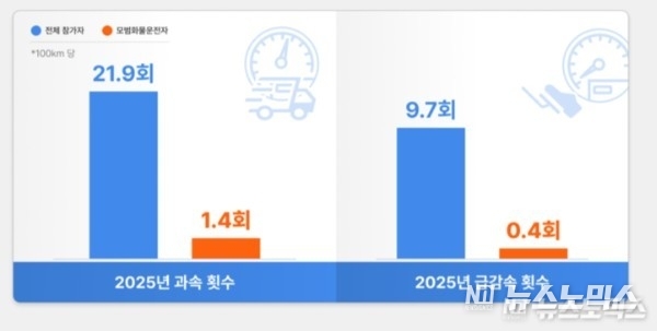 지난 2024년 기준 100km 주행당 급감속 횟수는 전체 참여자 평균이 9.7회인 것에 비해 모범운전자는 0.4회를 기록했다.