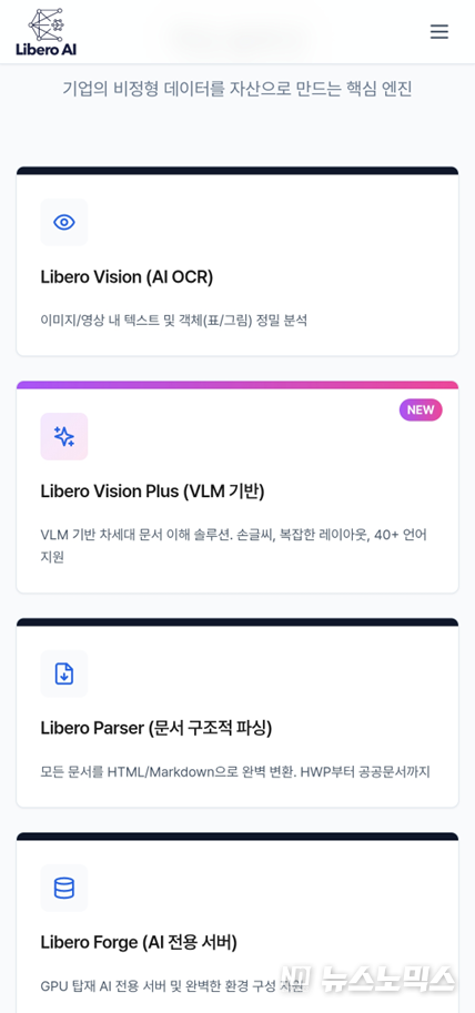 또한 리베로AI의 온프레미스 기반 딥러닝 AI OCR 솔루션 ‘리베로 비전(Libero Vision)’은 문장 구조, 표, 이미지 등을 정확하게 식별·해석하는 서비스를 제공한다.