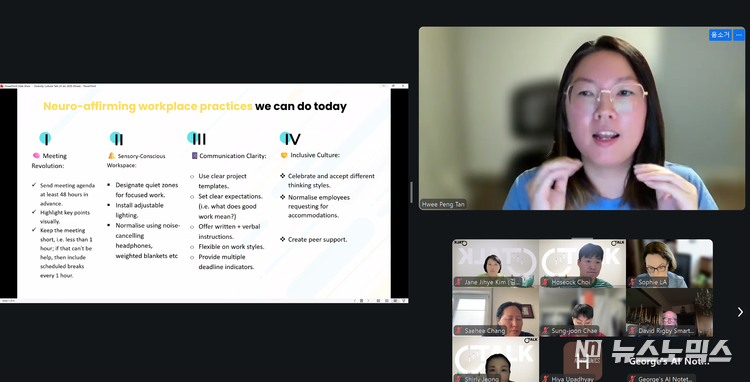 또한 사전 회의 자료 공유, 조용한 업무 공간 제공, 유연한 의사소통 방식, 충분한 정보 처리 시간 확보 등 실질적인 직장 내 편의 제공과 유니버설 디자인 개념이 소개되었다.