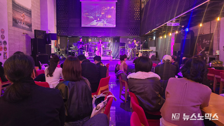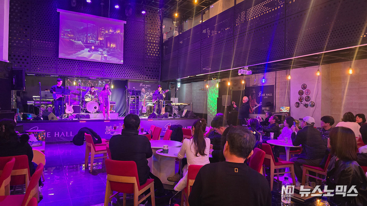 하남시 창우동에 위치한 미사리 블루홀 라이브 뮤직 카페에서 2월 21일 직장인 밴드들의 정기 연주회가 열렸다. 이날 무대에는 암바사밴드, RAINBOW, HIT밴드, 운슬밴드가 차례로 올라 각기 다른 색깔의 라이브 공연을 선보이며 관객들의 뜨거운 호응을 이끌어냈다.