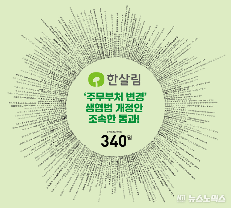 한살림연합 권옥자 대표는 “생협 주무부처 변경은 생협계가 10여 년 전부터 요구해 온 과제”라며 “여야 의원들이 관련 법안을 발의했다.