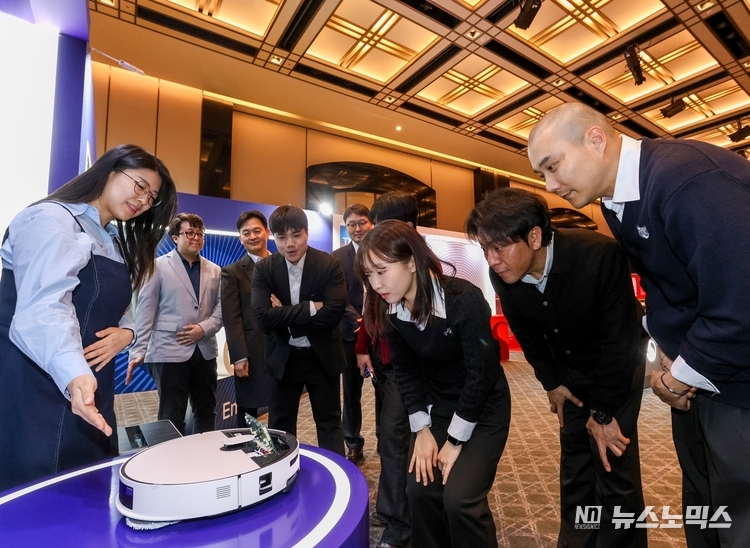 삼성전자가 지난 20일 그랜드 하얏트 서울 호텔에서 열린 주한미국상공회의소(AMCHAM, 이하 암참) 연례행사에서 2026년형 ‘비스포크 AI 스팀’ 로봇청소기를 전시했다.