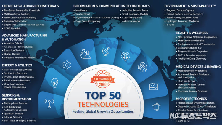 글로벌 시장조사 및 컨설팅 기업 프로스트 앤드 설리번(Frost & Sullivan)이 매년 발행하는 ‘상위 50개 미래 유망 기술 분석 보고서(Top 50 Technologies, 2026 Edition)’의 16번째 판을 발표했다.