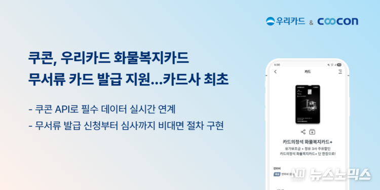우리카드는 ‘카드의정석 화물복지카드’ 발급 과정에 쿠콘 API를 도입해 기존 서류 기반 신청 절차를 디지털화했다. 이를 통해 화물 사업자의 카드 발급 편의성을 높이고 카드사 내부 심사 절차도 간소화했다.