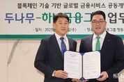 뉴스노믹스 전상천 기자 | 하나금융그룹(회장·함영주)와 두나무(대표·오경석)은 지난 3일 오후 하나금융그룹 명동 사옥에서 '블록체인 기술을 활용한 금융서비스 공동 개발을 위한 업무협약'을 체결했다고 밝혔다. 이날 협약식은 양사의 주요 경영진이 한자리에 모여 상호 간 신뢰를 재확인하고 △블록체인 기반 해외송금 프로세스 구축 △외국환 업무 전반의 신기술 도입 △하나머니 관련 서비스 고도화 등 다양한 분야에서 상호 협력을 확대하기 위한 자리로 마련됐다. 전 세계적으로 블록체인, AI(인공지능), 결제 인프라를 중심으로 금융의 디지털 전환이 가속화되는 있다. 이에 양사는 이번 협약을 통해 두나무가 보유한 블록체인 기술을 하나금융그룹의 글로벌 네트워크와 연결하는 방식으로 미래 금융으로의 대전환을 선도하고 글로벌 시장을 선점하기 위한 원동력을 갖춘다는 목표다. 먼저, 해외송금 프로세스에 블록체인 기술을 접목한 서비스를 우선적으로 선보인다. 송금인과 수취인이 블록체인 원장에 기록된 송금 정보를 통해 자금을 주고받는 구조로 손님들이 보다 쉽고, 빠르고, 안전하게 해외송금 서비스를 경험할 수 있는 거래 환경을 구축할 계획이다. 이를 통해 기존 방식 대비 소요시간과 비용을 획